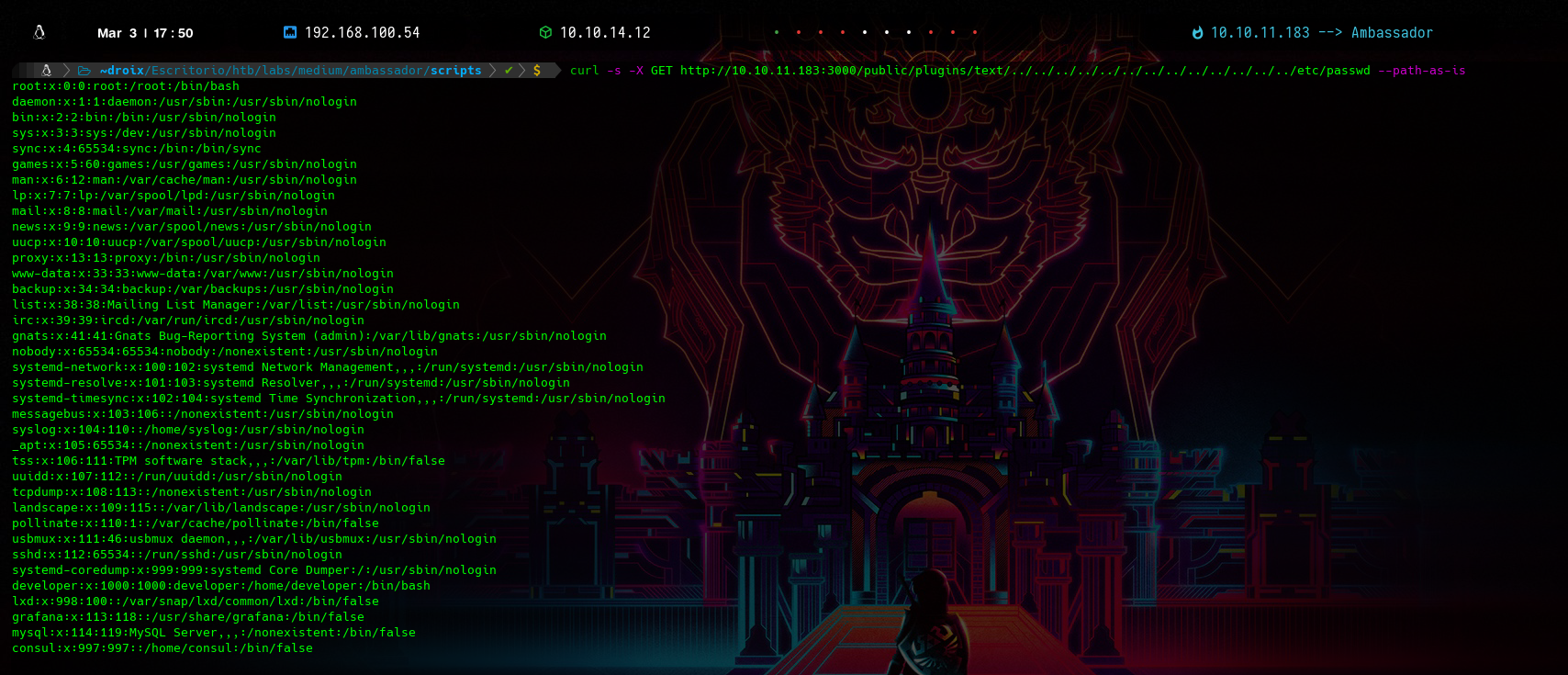 10.10.11.183 Ambassador (medium machine) otra guía para la resolución de esta máquina tocando un poco de path traversal aprovechandonos de un exploit en grafana y una escalada por medio de git.