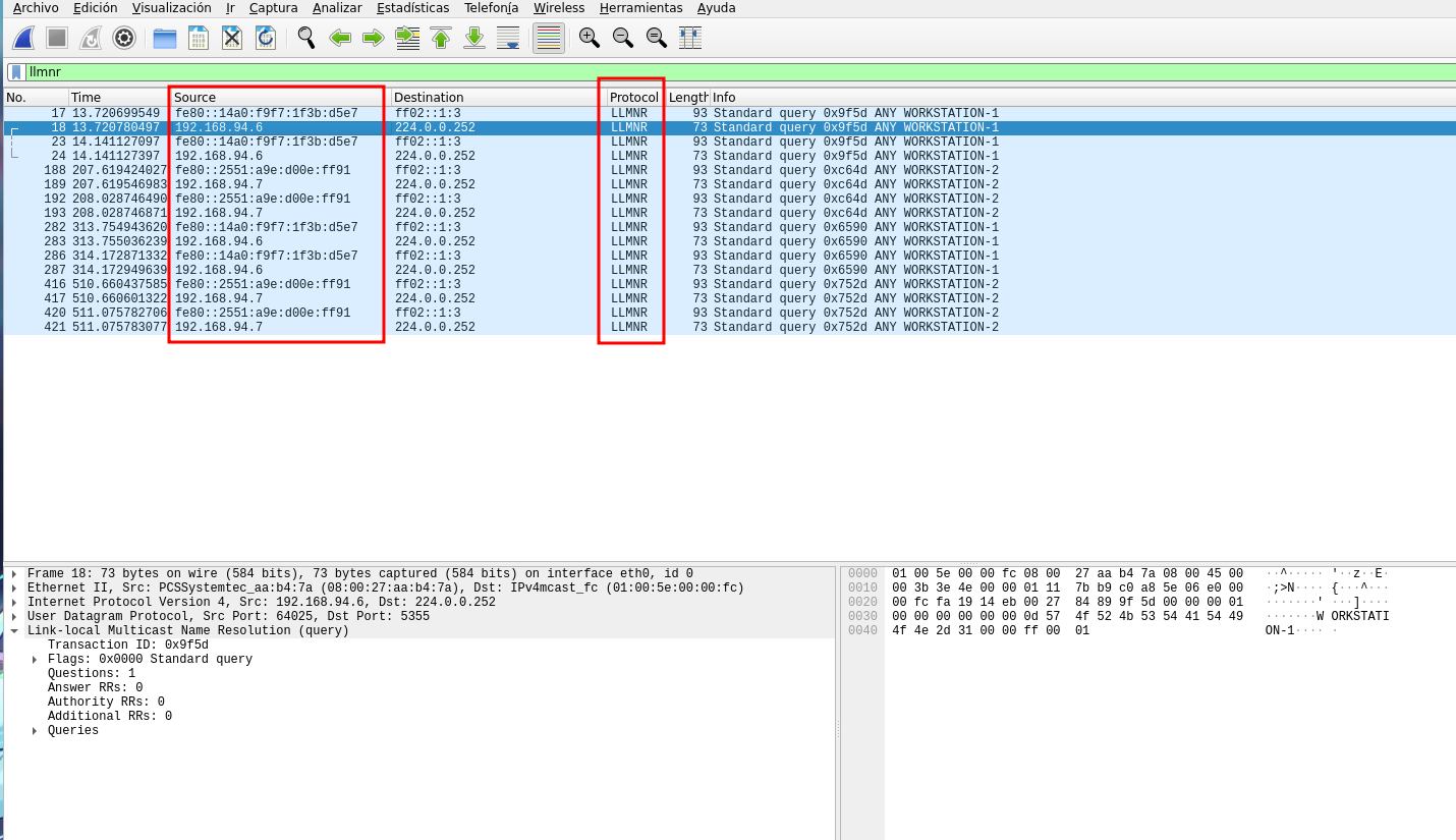podemos hacer un sniffing de tráfico rápido por la red para saber las conexiones entre los hosts y ahí sacar su respectiva dirección IP , cuando se envían paquetes broadcast sabemos que se envían a todo un grupo de hosts , se pueden notar solicitudes ARP y respuestas MDNS y otros paquetes de capa dos (dado que es una red conmutada). En este pequeño ejercicio entraré al explorador de archivos e ingresaré a un recurso que no existe o no se puede resolver mediante los métodos habituales de resolución de nombres (DNS, por ejemplo) en un entorno de Windows o Active Directory, el sistema puede recurrir a protocolos alternativos para intentar resolver el nombre a una dirección IP. Uno de estos protocolos es el Protocolo de Resolución de Nombres de Enlace Local LLMNR (Link-Local Multicast Name Resolution), Podemos observar el tráfico que se genera cuando ingresamos a esos recursos