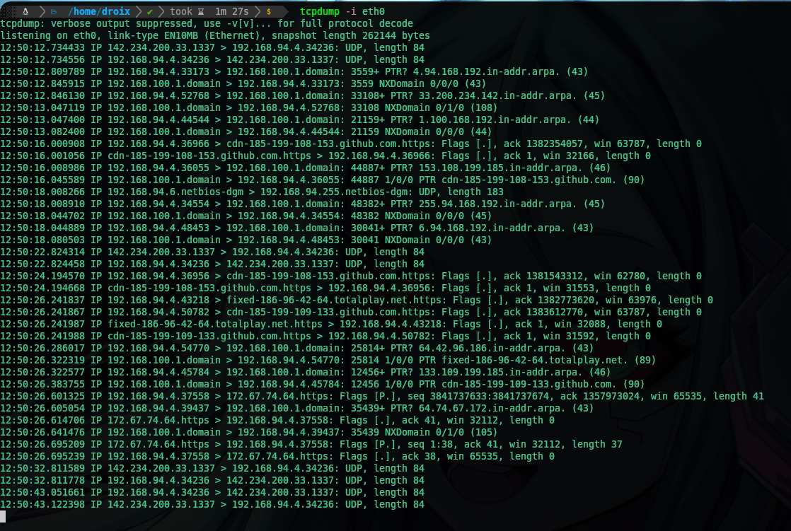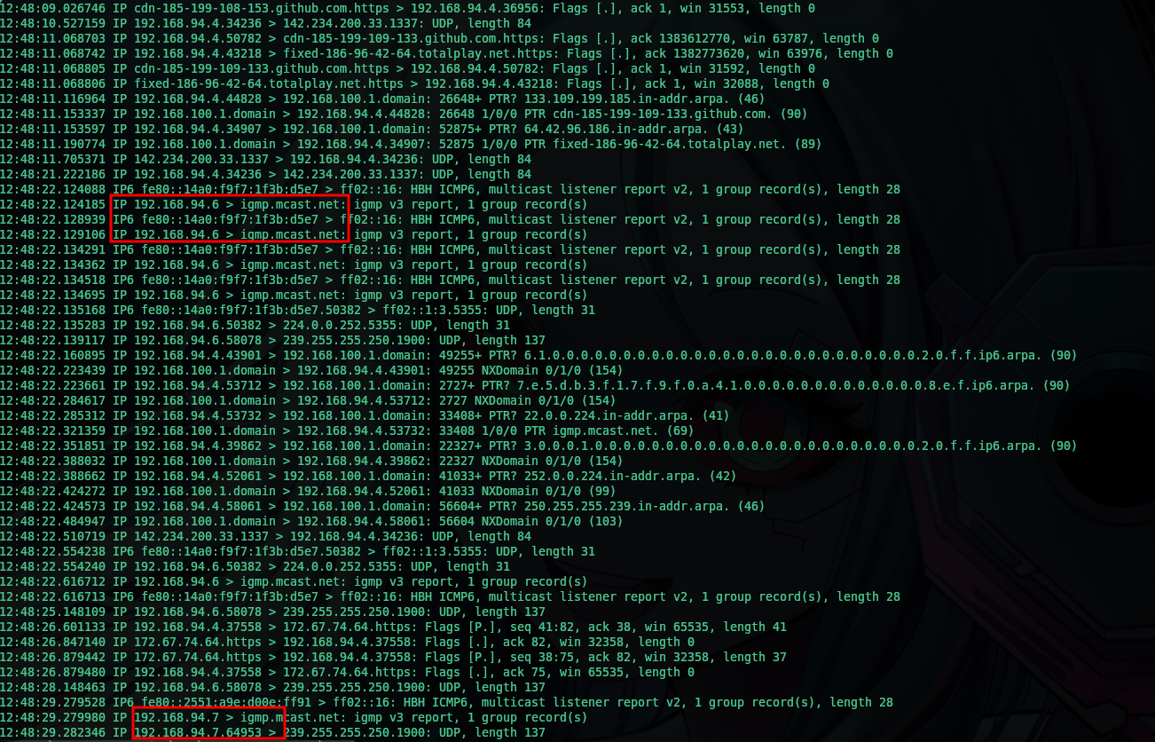 Tanto como Workstation-1 y Workstation-2 están tratandose de comunicar a un recurso inexistente del controlador de dominio. De igual forma con tcpdump podemos escuchar la traza de paquetes que pasan por la red y descubir los hosts que se encuentran