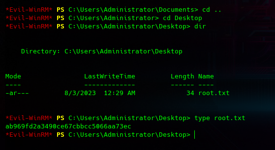 *Evil-WinRM* PS C:\Users\Administrator\Documents> whoami
